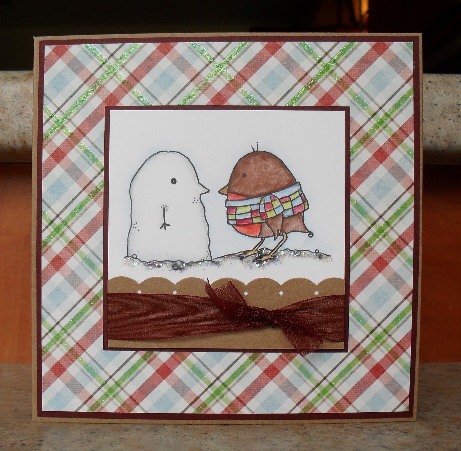 This wee mouse (very imaginitively called 'Mouse Holding Ice Cream' from Stampavie) has obviously been enjoying hotter weather than we have here in the UK, and is cooling down with a gigantic ice cream sundae. I coloured him using watercolour pencils, then added Glossy Accents to the cherry and his sundae glass. The papers are a mixture of BasicGrey 'Cupcake' and 'Kioshi', and Pink Paislee '360 Degrees' pads - I distressed the egdes, then added faux stitching with my CutterBee Bug and a white gel pen. I used my Cuttlebug 'Swiss Dots' folder for the embossing, sanding over the raised areas to reveal the white core, then added a sentiment from the 'Cupcakes' set by Hero Arts.