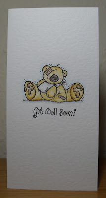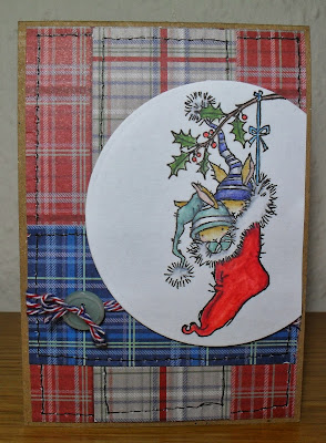 I used 4 inch kraft card blanks (from Hobbycraft), and simply inked around the edges of the die cut pieces (using 'Brushed Corduroy' Distress Ink) before sticking them down, and adding a sentiment from an old CCSR set by Papermania. These were so quick to make...I made a dozen in total: