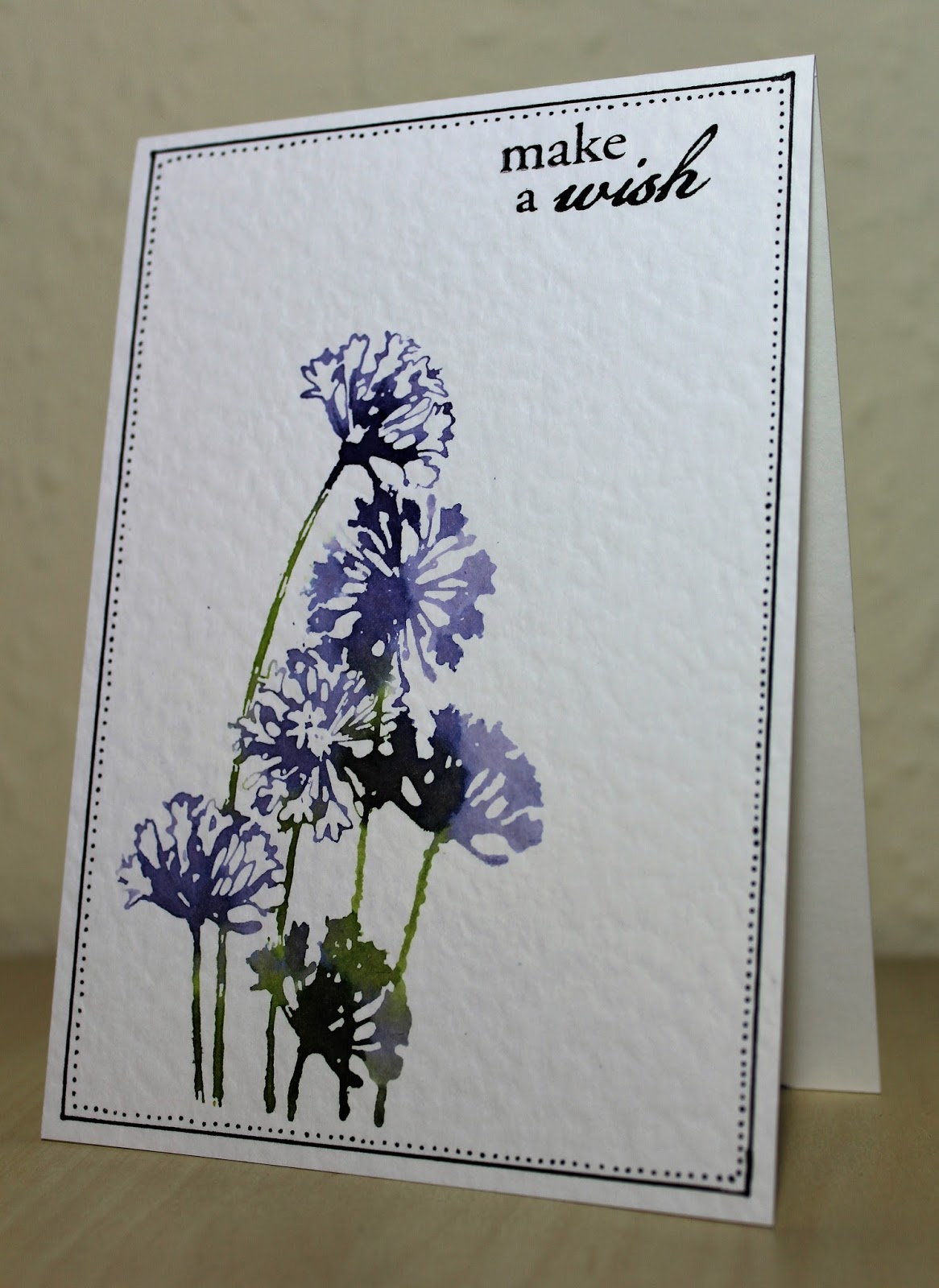 I picked a Lili of the Valley stamp called 'Pups with Present' featuring two adorable puppies. I stamped the image directly on to my card blank, then coloured it using watercolour pencils. I added some sparkle to the snowy ground using a Wink of Stella pen, and a Lili of the Valley sentiment.