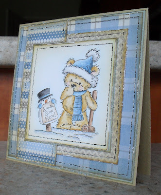 For my 'K is for Keep It Simple' project, I made a one layer card using a stamp from the 'Joy to the World' stamp set by Penny Black. I coloured the image suing watercolour pencils, added a sentiment (from the 'Scribbly Christmas' set by Tim Holtz for Stampers Anonymous), and doodled a simple border.