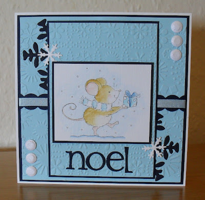 The My Time to Craft Challenge has a lovely theme for their challenge this week...'Winter Pals'. Now, I think that these two little fellas look both wintry and friendly...and having a high old time singing their hearts out! The image is a House Mouse stamp called 'Christmas Singing Duo'. I followed the sketch from Sketch Saturday...although I was naughty, and omitted the scalloped edges. And, I'm also entering this card for a couple of 'Christmas' themed challenges: Stampavie & More; and Stamp with Fun.