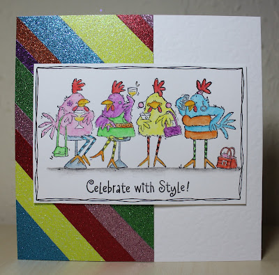 The 'G for Glitz' theme is right up my street! I have a fairly sizable collection of the embossing glitters by WOW...and love how sparkly they are, and can make a really simple stamped image look really pretty (and impressive!). I sued a new stamp on this card...it's called 'Connor's Crown Jewels' by Indiglo Blu and I found it in the 'Bargain Bin' of a lovely 'Aladdin's Cave' of a craft shop a couple of weeks ago. There are two elements combined in the stamp...some beautiful hanging baubles and a snowy border, so I decided to try to use two different embossing glitters. I stamped the image on to a piece of black card using Versamark Ink, then carefully poured 'Sparkling Snow' embossing powder on to the snowy border part of the image, removed the excess, then covered the middle portion of the stamp with 'Metallic Gold Sparkle' embossing glitter. The sentiment stamp is from a set by Lili of the Valley.