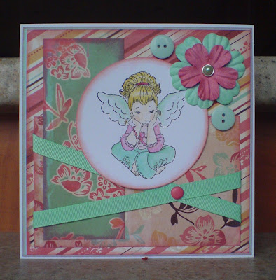 There's another great sketch for this week's Sketch Saturday Challenge...which I've combined with the Secret Crafter Saturday Challenge 'Recipe' of '3 Buttons, 2 Design Papers, 1 Ribbon'. I rotated the sketch to fit my 'Birthday Monkeys' image (by Rachelle Anne Miller for Stampavie). The papers are by Cosmo Cricket ('Papa') - the stars were cut using Nesties and show the reverse side of the paper...I hope that's not cheating! ;0)