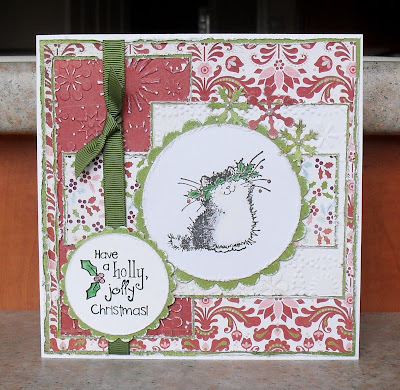 Well, so far I'm managing to keep up with my plan to make at least one Christmas card a week...this is my third...and I have another to show you later in the week. I noticed a 'Christmas card tally' on someone's blog whilst blog-hopping the other day...a great idea to keep track...so I think I'll add one to mine too! :0)