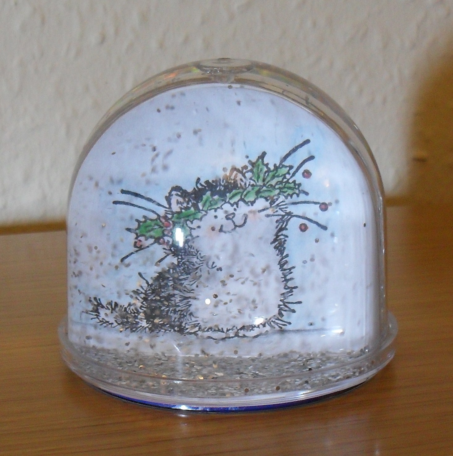 The snowglobe is from Hobbycraft...but instead of putting photos inside, I added a stamped Penny Black image (from the 'Christmas Critters' set) and a sentiment (from a set by Paper Makeup):