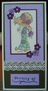 My next card features a person...which any regular visitor to my blog will tell you is a rare occurrence...I just find animals so much easier to colour...but I like the bright summery colours on this card.
