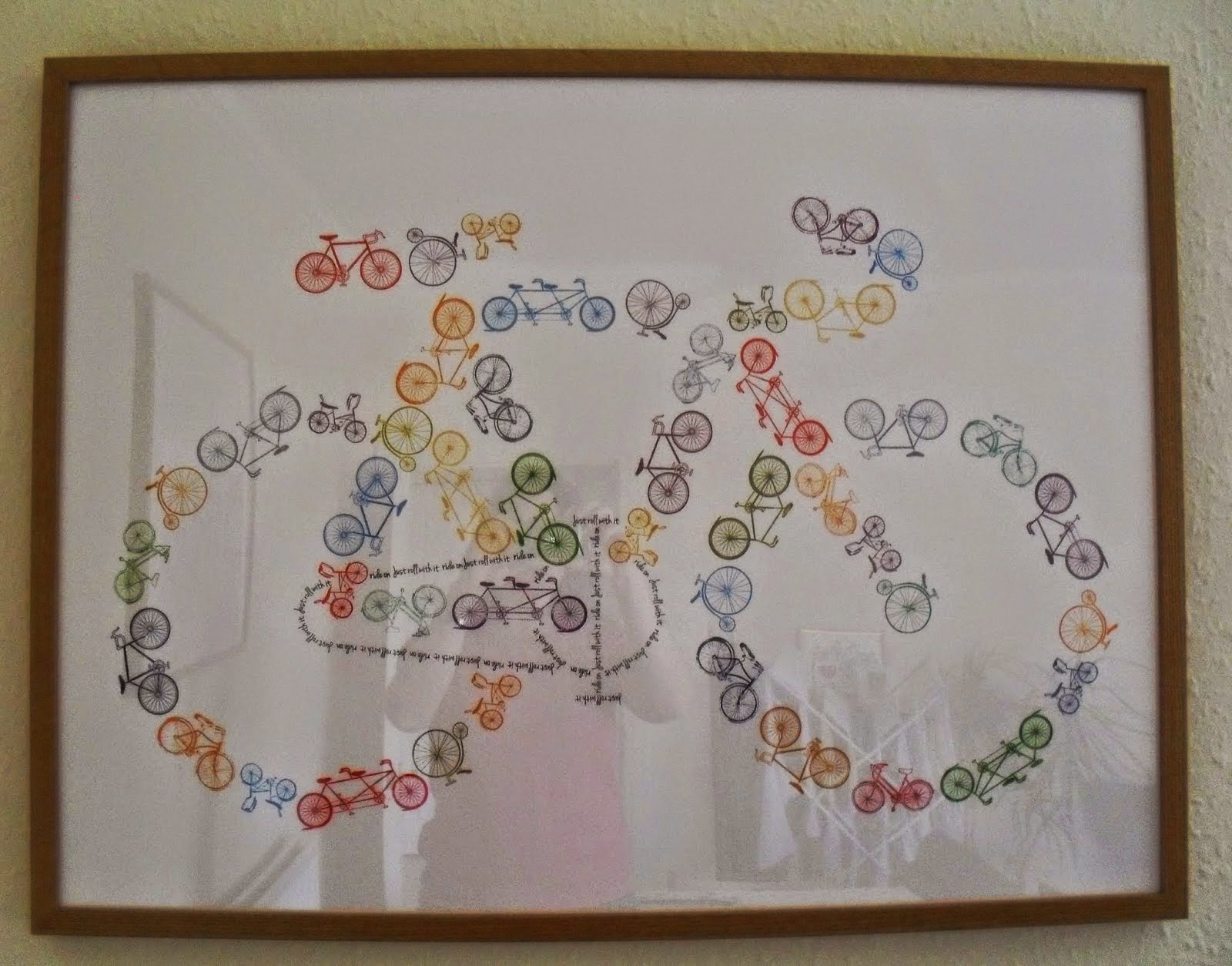 Lastly, I have a piece of wall art I made using lots of bicycle stamps...I share a flat with a bike obsessive and made this to go on our shared office/craft room wall along with some others...but he liked it so much that it ended up in the living room! I had to include it in my favourites for last year, as I love looking it every day...it was well worth the 3 and bit hours I spent stamping it!