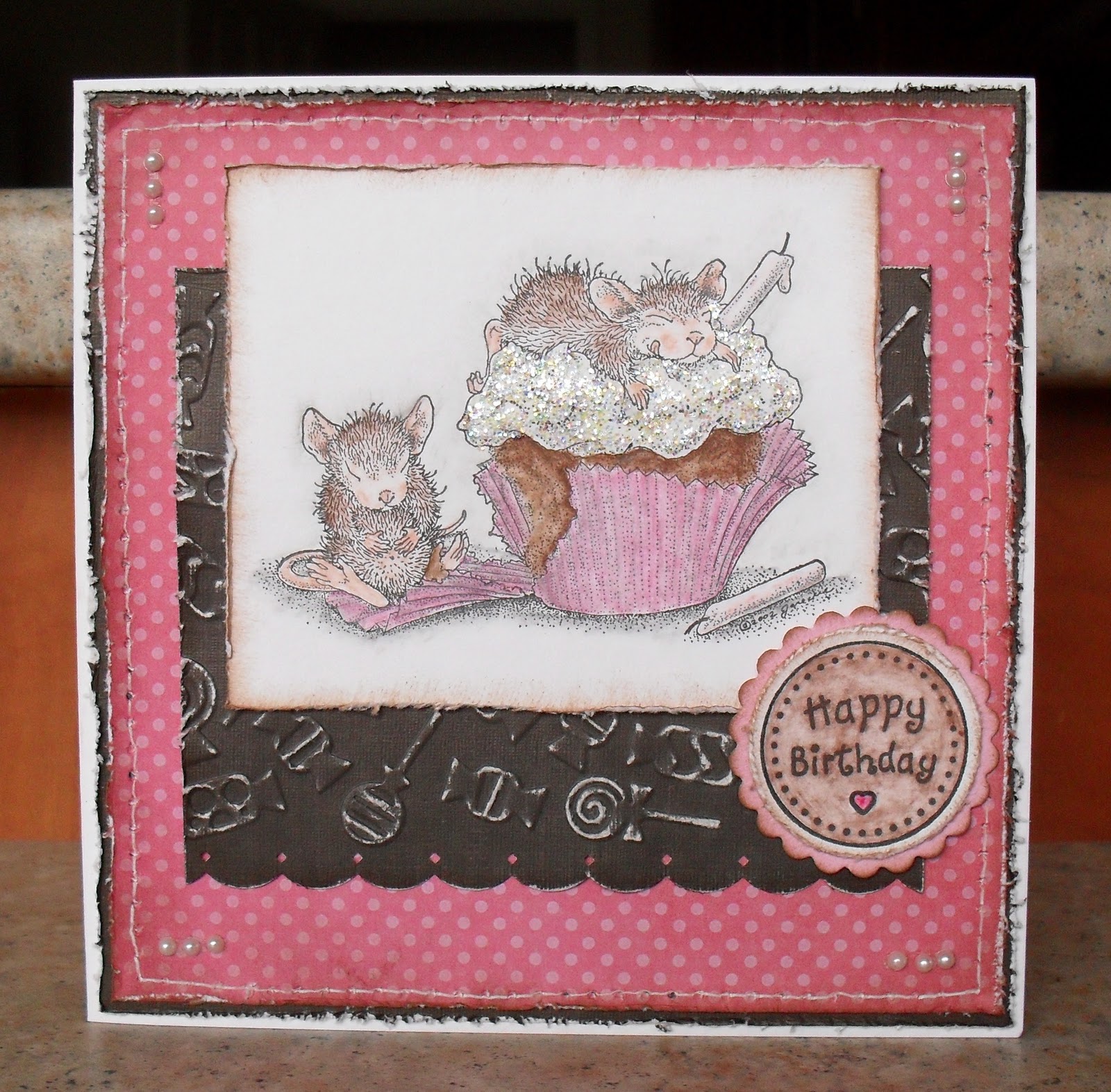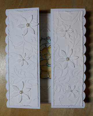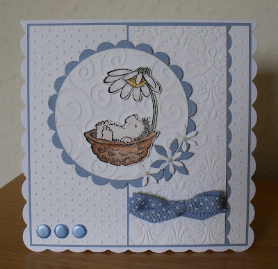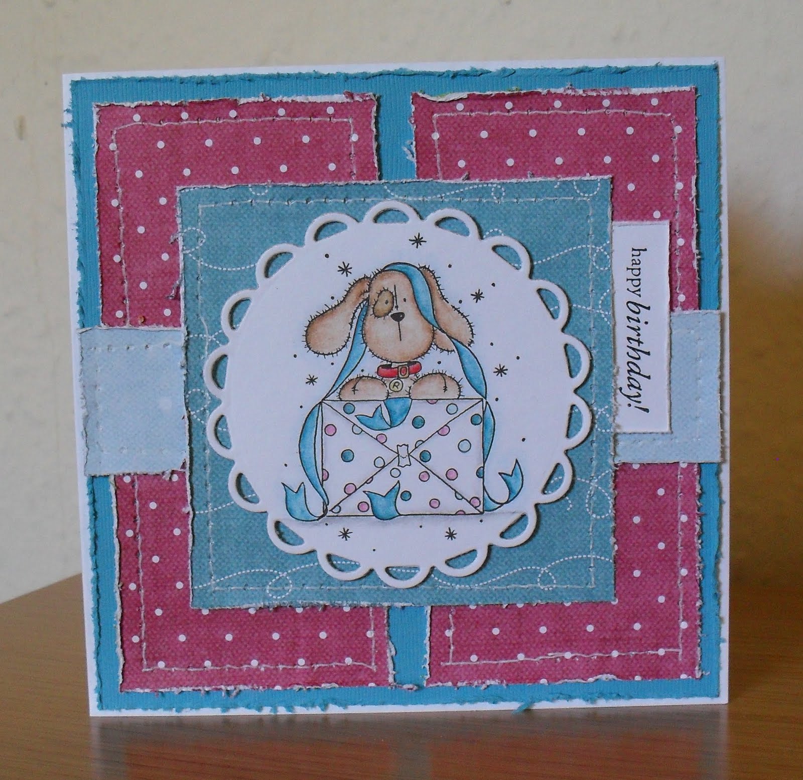 I've used an image from DigiDarla Designs called 'Baby Bunny with Eggs' on my project...another Easter treat bag. The paper is from the 'Hippity Hoppity' pad by We R Memory Keepers...I added some faux stitching using my CutterBee Bug and a white gel pen. I used my EK Success 'Scalloped Diamonds' punch for the border along the bottom, and the spotty ribbon is from Fantastic Ribbons.