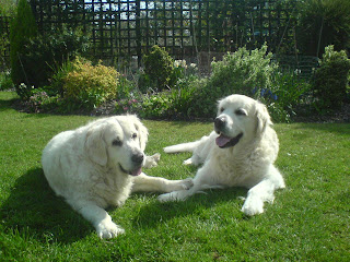 This is Cassie and Seamus (or Shazberry to his friends...don't ask!). They belong...or rather did belong to my parents...sadly Seamus is no longer with us. This photo was taken at Easter 2007 in my parents' back garden, on a gloriously sunny and warm spring day. I do love the way that it looks like they're holding hands in this photo...so cute! They were 'adopted' by my parents as adult dogs, and lived together all their lives, although they're not related to each other. I think they were friends, although they never really played together. Seamus would always keep a look out for Cassie when they went out for walks, and he was always a gentleman...letting her through the door first...although she's really pushy, so he didn't get much say in the matter! lol Cassie is now enjoying being an only dog, but she does seem quieter now, so I think she does miss him too.